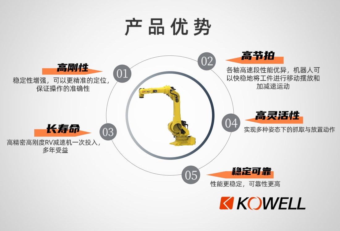 •高節拍:各軸高速段性能優異,機器人可以快穩地將工件進行移動擺放和加減速運動。