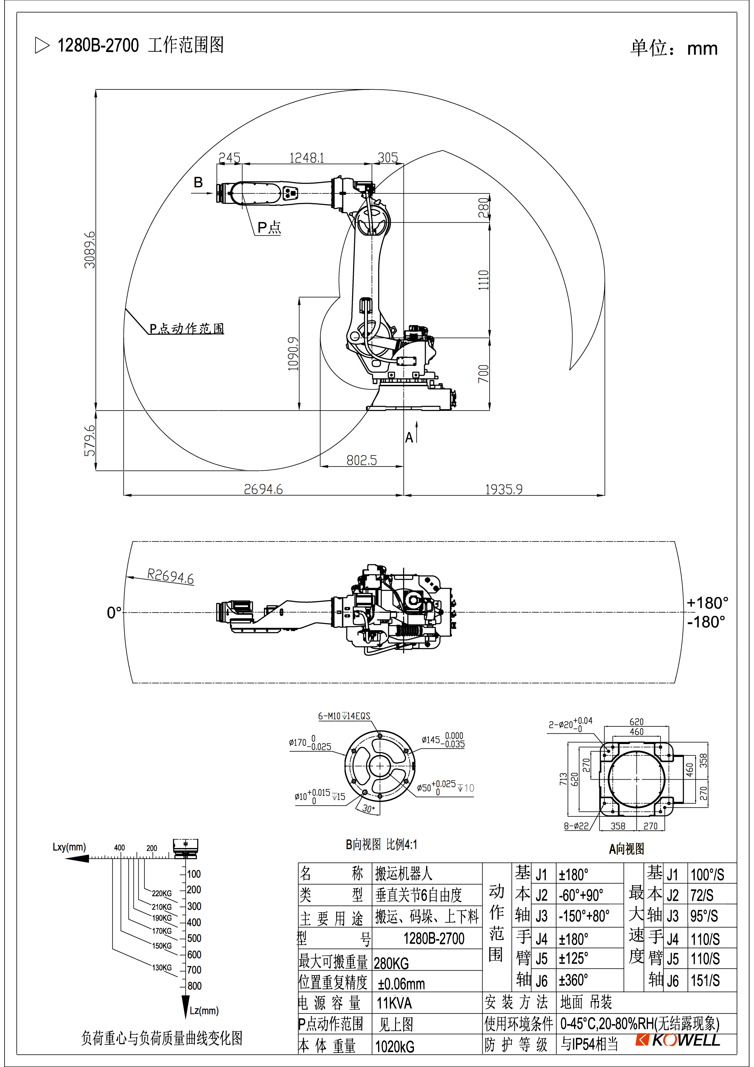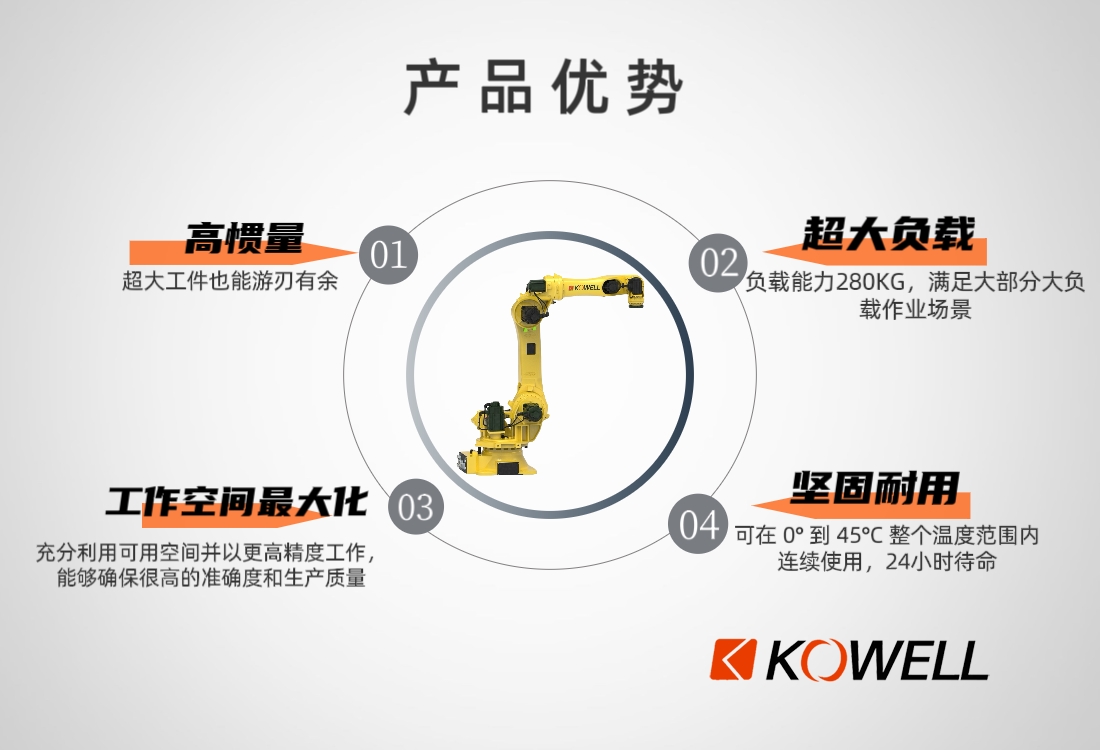 •超大負(fù)載:負(fù)載能力280KG,滿足大部分大負(fù)載作業(yè)場(chǎng)景。